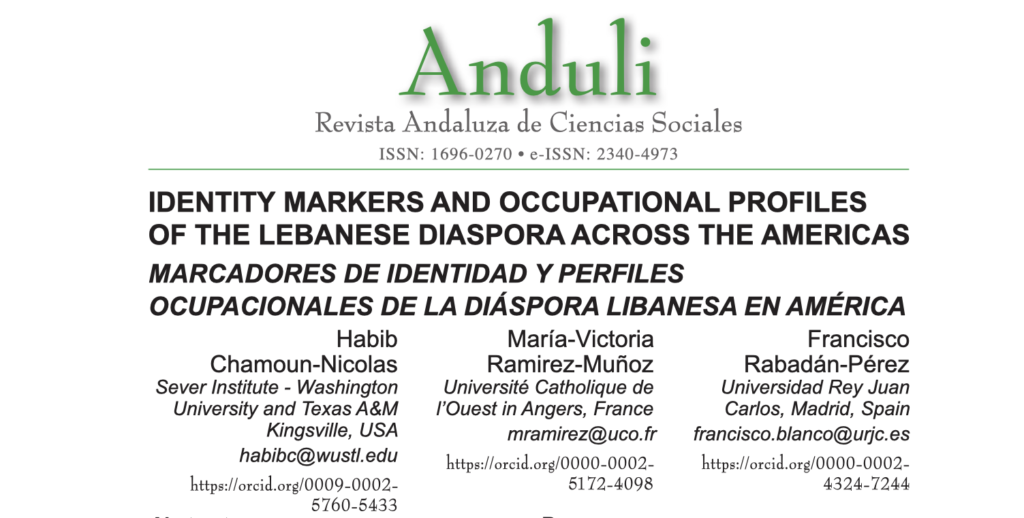 Chamoun-Nicolas, Habib, María-Victoria Ramirez-Muñoz, y Francisco Rabadán-Pérez. 2026. «Identity Markers and Occupational Profiles of the Lebanese Diaspora across the Americas ». ANDULI, Revista Andaluza De Ciencias Sociales, n.º 29 (enero):219-47. https://doi.org/10.12795/anduli.2026.i29.10.